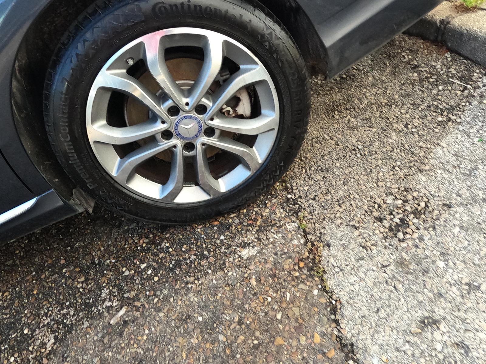Nas imagens iniciais, as jantes apresentam acumulação de pó dos travões e sujidade entranhada, deixando o acabamento baço e sem definição. Os pneus mostram um aspeto seco e irregular, com resíduos visíveis.